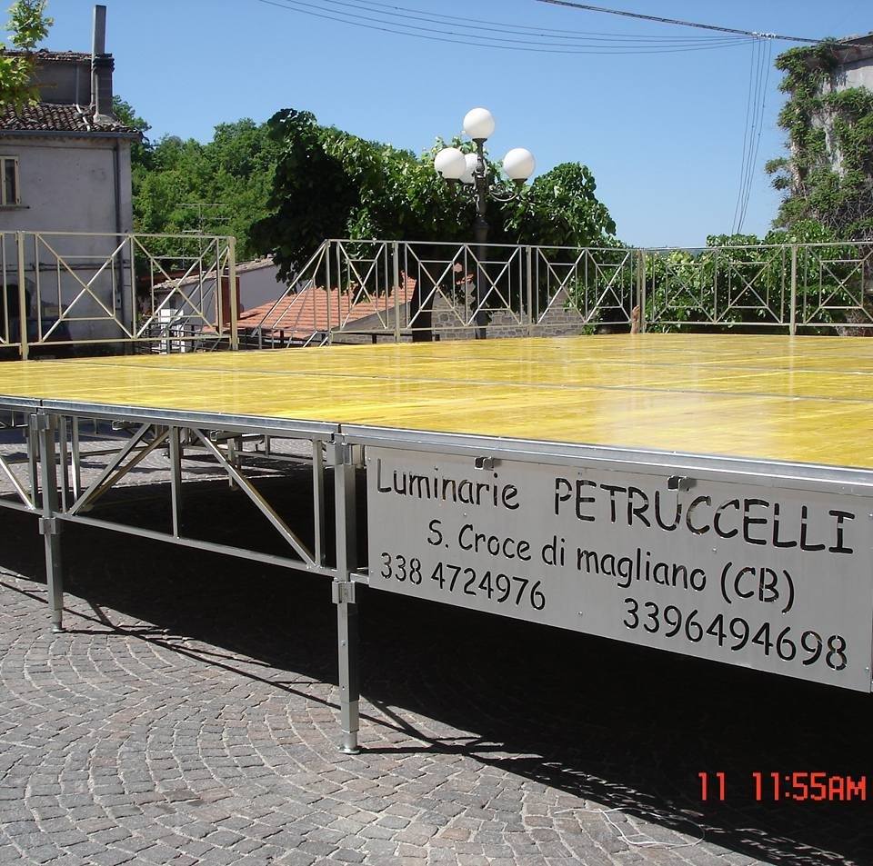 Oltre agli addobbi luminosi Luminarie Artistiche Petruccelli effettua l'allestimento di palchi e luci, noleggiando ad enti e privati anche tutte le attrezzature utili per gli allestimenti di spettacoli, eventi, concerti e manifestazioni, comprese le piattaforme aeree necessarie per il montaggio dei palchi e delle strutture di protezione, delle cassarmoniche e degli impianti acustici.